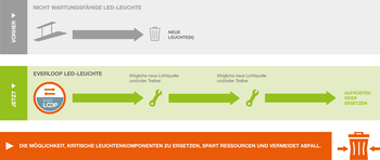 Statt komplette Leuchten zu entsorgen, ermöglicht das System den Austausch von Lichtquelle und Treiber.